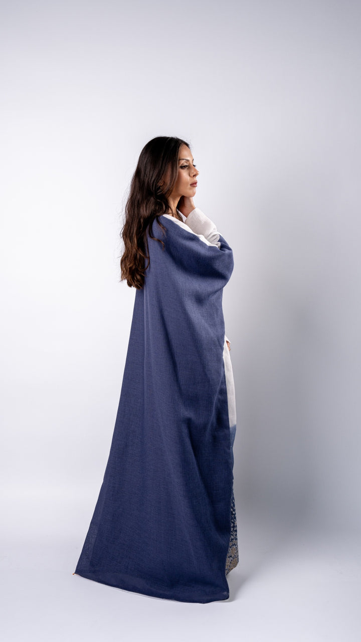 The soft white and ocean blue colors are inspired by the sea, while the golden flower details on the front add a touch of luxury. Perfect for important events, beachside evenings, or stylish gatherings.