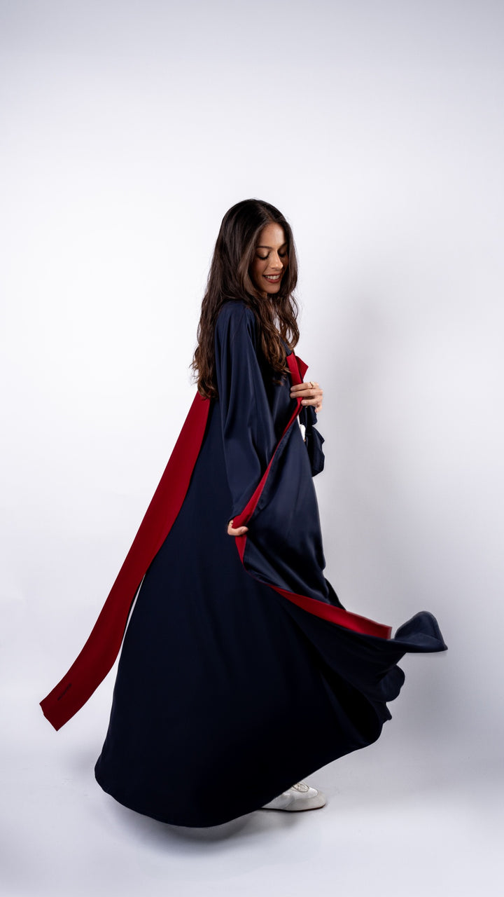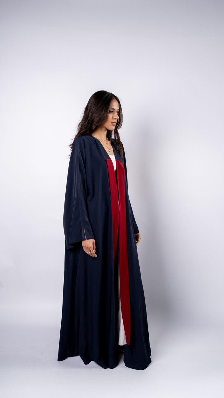 A soft, lightweight abaya made for daily wear. The navy and deep red colours give it a smart, clean look. Easy to style for work or errands – this is your go-to abaya for comfort and elegance all day.